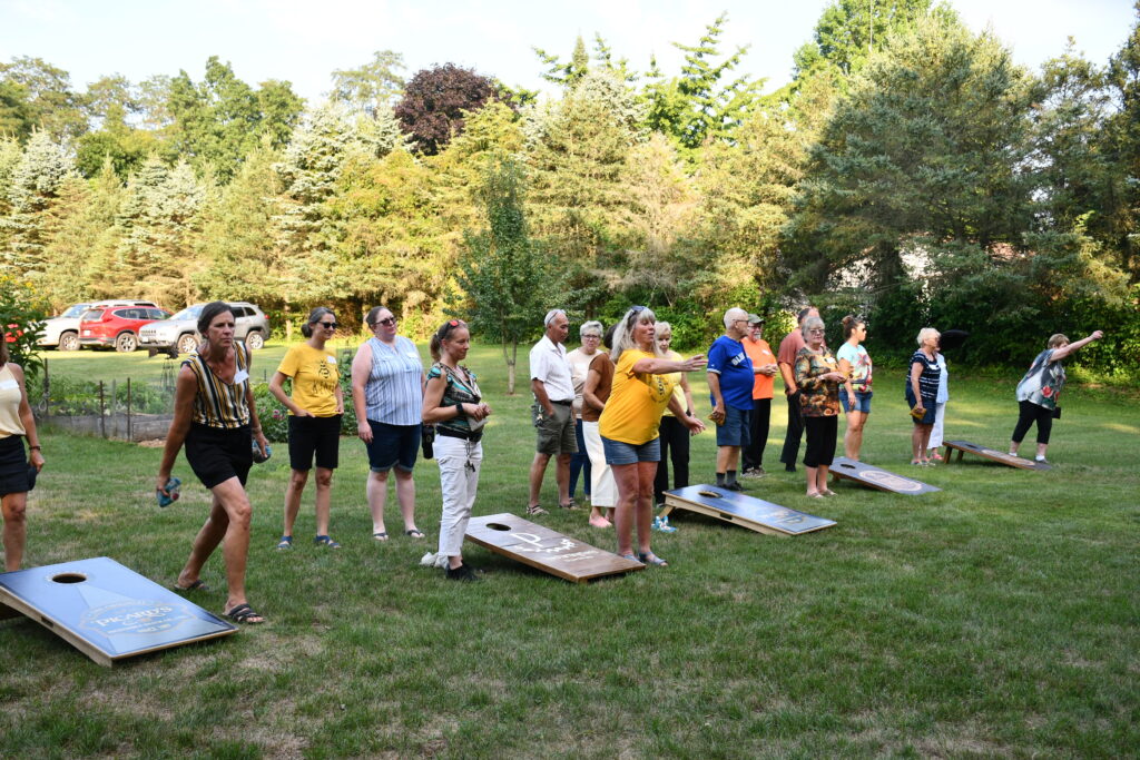 Organizers, THS members Barb Q and Patty P planned a wonderful evening of fun and friendship. After dinner, members played corn hole with excitement and a fun game of garden bingo for prizes.